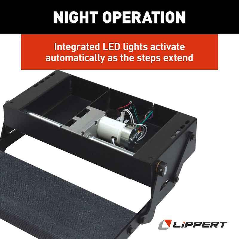 El escalón eléctrico plegable individual Lippert Tread Lite es un sistema de entrada para vehículos recreativos de alta gama, diseñado para un funcionamiento rápido, estable y fiable. Con componentes mecánicos mejorados , este escalón se extiende y se retrae más rápido que los escalones eléctricos estándar e incluye tecnología de detección de obstrucciones para mayor seguridad.